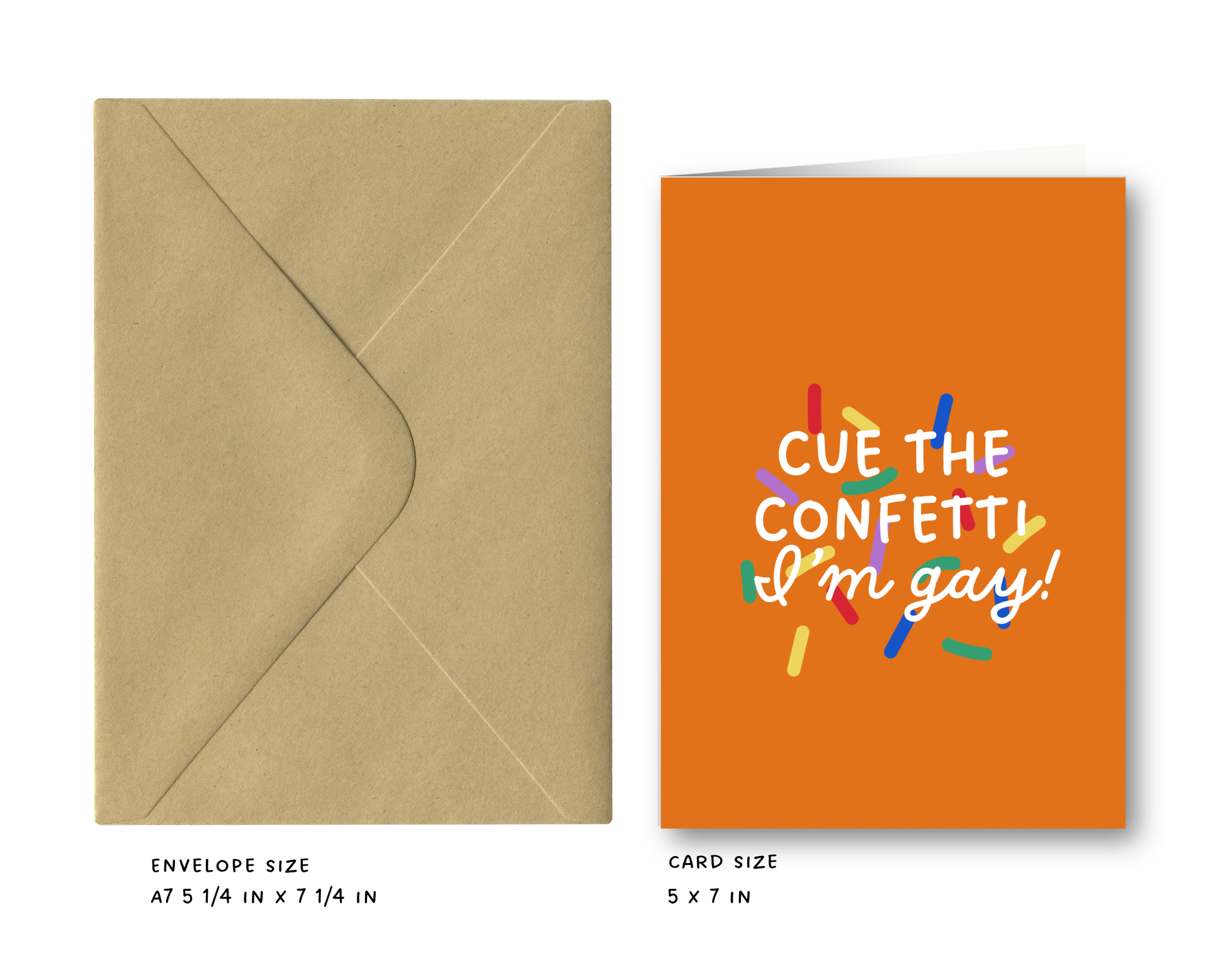 LGBTQ+, Coming Out, Gay, Pride, Queer Joy, Bold Card, Funny Card, Affirmation, Confetti, Rainbow