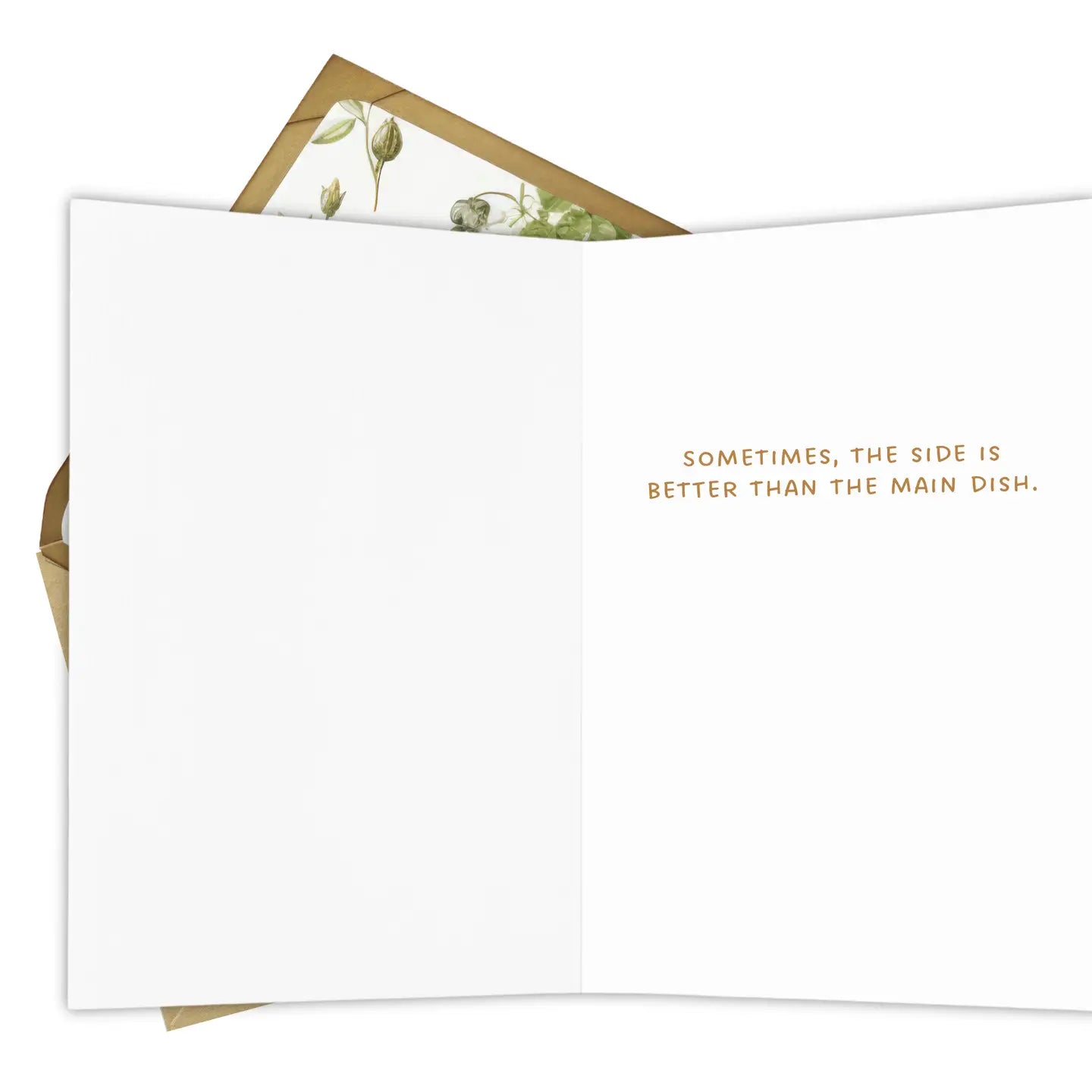 A tasteful table spread full of sides. No mains. This card is for the ones who know their role — and love it. From mac and cheese to mashed potatoes, every dish reminds you that the sides sometimes steal the show.